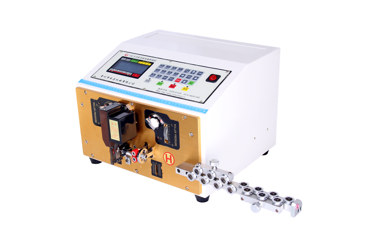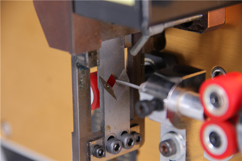 本機電腦控制,按鍵操作,高速剝線在裁剝范圍內可任意設定線長,線頭,線尾及剝線長度,有扎量、延時等功能,性能穩(wěn)定操作方便,低噪音,裁線精確無損傷,是加工細線、短線的專用設備,可加工AWG36線材,是目前國內加工較細導線的電腦剝線機,對兩輪的壓力間隙采用細分微調,可精確到0.05MM,以保證每條線的加工精度,減輕導線外皮壓紋,使加工后的線束更加合適